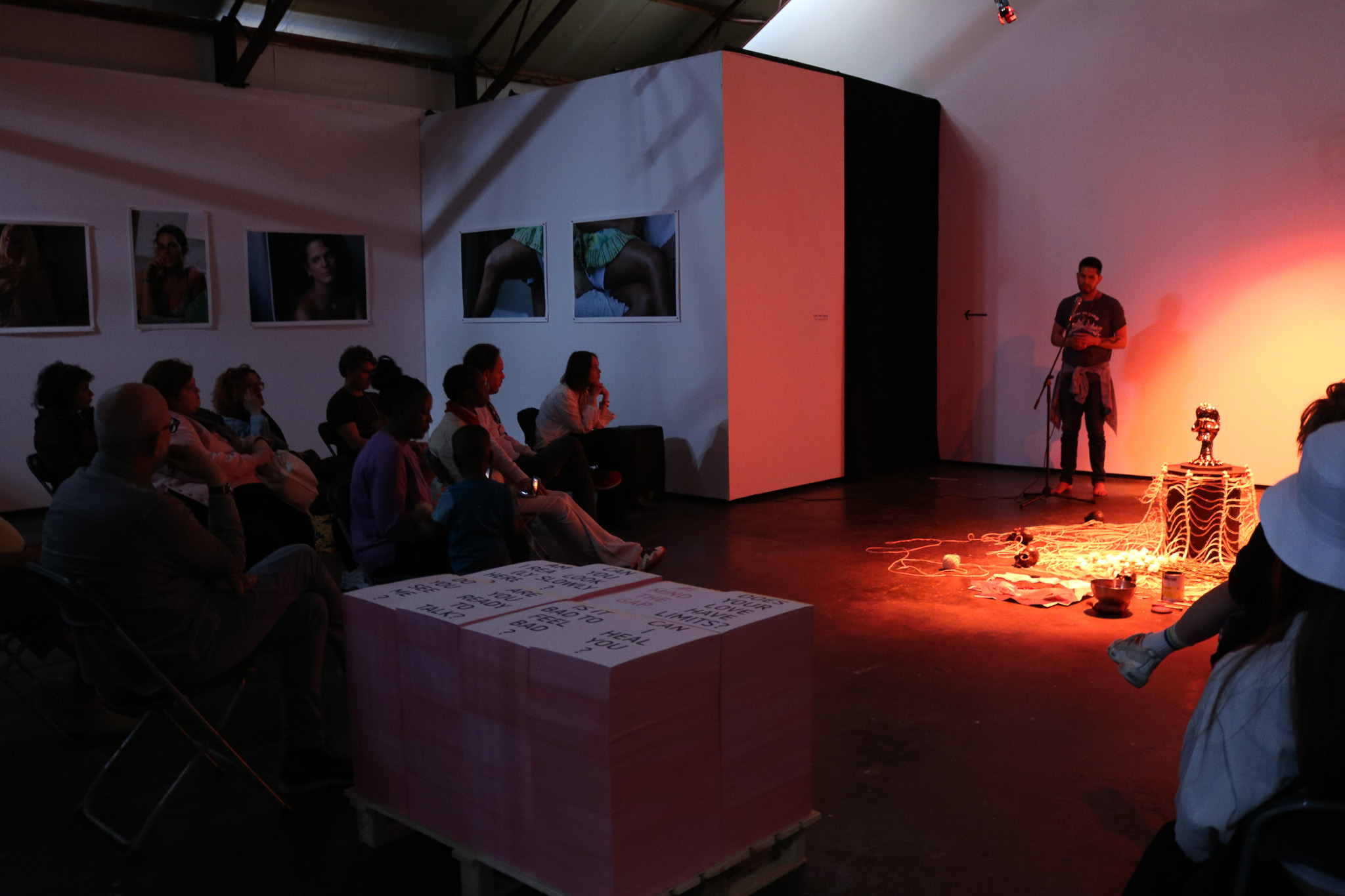 In dialogue with nature, Amerindian artist Dodi Espinosa led the public through a collective performance-action to close Mind the Gap on Sunday 21 May. Like the late Cuban-American artist Ana Mendieta, who bathed herself in the makeup of trees, rivers, streams and dirt in her ‘earth-body’ works, Dodi works directly with nature as a gateway to his ancestral land, to uncovering pluralities of being, before the effects of colonialism. Dodi grew up in the rural town of San Martin de las Pirámides, near the pyramids of Teotihuacan, Mexico, and pledged this ceremony as a symbolic act of decolonisation. Connecting with his ancestral roots and the natural world around him, Limpia and Quema, was a vehicle for unlearning systems of oppression, like the gender binary fuelled by the Catholic Church, and machista culture. Copal, the sticky, sweet incense derived from tree sap, sacred to the Aztec people and seen as the blood of trees, was burned and released through the incense skull of the Aztec deity, Mictlāntēcutli. Dried red chillis, soaked with the intentions of the participants, were exchanged for fresh white carnations; a symbolic gesture of hope. We united on the banks of the IJ and birthed a fire that flailed wildly in the May breeze. The chillies, the black paint, the newspaper; elements of Dodi’s audience participatory project Invocation (2023) were kissed by the fire, gradually turning to ash; murmurs of grey flecks scattered along the horizon. This was the fitting swan song for Mind the Gap, a project about how art lets us navigate our emotions and mental state, especially for queer, marginalised communities displaced in a white, patriarchal world. Through reconnecting with the natural we can work towards more tolerant and progressive ways of being, as individuals, and a collective.
